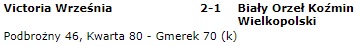 Jerzy Podbrożny przez to, że grał tylko i wyłącznie w meczach domowych (ale z tego co pamiętam to też nie wszystkich) to rozegrał z nami zaledwie kilka zawodów. Udało mu się także wpisać na listę strzelców. Było to w meczu z Białym Orłem Koźmin (wydaje mi się, że był to w ogóle debiut Jurka w barwach Victorii). Wyprowadził on wtedy nasz zespół na prowadzenie, a mecz ostatecznie wygraliśmy 2-1. Drugą bramkę zdobył wówczas młodzieżowiec – Marcin Kwarta.